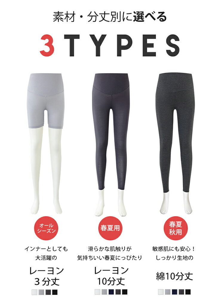 ◆A.レーヨン10分丈 ・サイズ:フリー ・素材:レーヨン95%/スパン5% ・カラー:アイボリー、グレー、チャコール、ネイビー、ブラック ウェスト ヒップ もも 裾 32cm 38cm 22cm 9cm 股上 股下 着丈 - 31cm 67cm 98cm - ◆B.綿10分丈 ・サイズ:フリー ・素材:綿95%/スパン5% ・カラー:ブラック、チャコール、アイボリー、グレー、ネイビー ウェスト ヒップ もも 裾 31cm 35.5cm 22cm 9.5cm 股上 股下 着丈 - 32cm 63.5cm 95.5cm - ◆レーヨン3分丈 ・サイズ:フリー ・素材:レーヨン95%/スパン5% ・カラー:アイボリー、グレー、チャコール、ブラック ウェスト ヒップ もも 裾 30cm 37.5cm 22cm 18cm 股上 股下 着丈 - 31cm 13cm 44cm - ※サイズは平置き片面のサイズです。