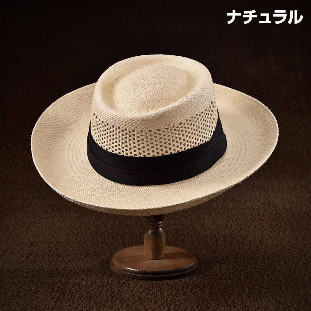 サイドに備えられた段巻きリボンにも優美さが際立つ、ポークパイ型パナマハットが登場しました。