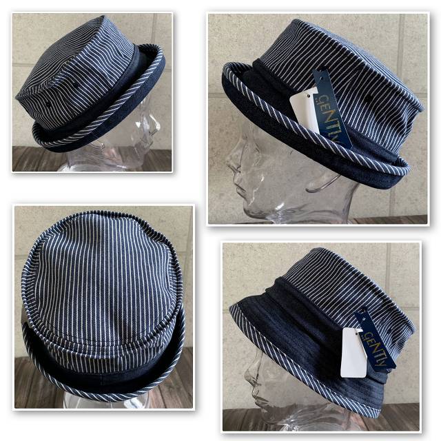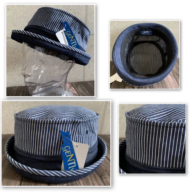 定番ヒッコリーとデニム生地を使用した ポークパイハット。