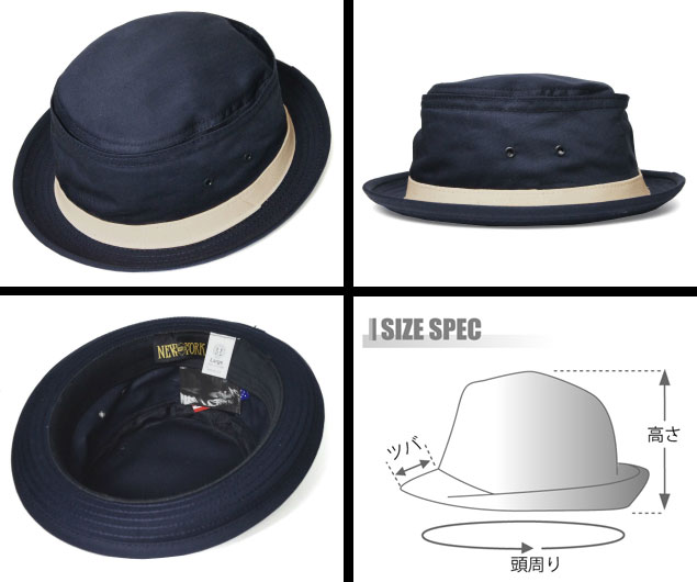 商品スペック 商品名 New York Hat(ニューヨークハット) ポークパイハット #3061 COTTON STINGY コットンスティンジー 商品番号 101001279 カラー Navy 素材 コットン100% 頭周り M:約55.5cm / L:約57.5cm / XL:約58.5cm2XL:約60cm ツバ 約3.5cm 高さ 約9cm バンド幅 約2.5cm 大きさ 縦幅:約29cm / 横幅:約25cm (サイズによって若干の誤差が生じます) 生産地 アメリカ製 備考 サイズはあくまで目安ですので、ご了承 下さいませ。